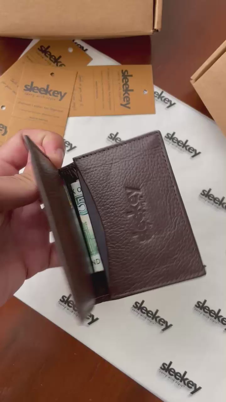 - Holds up to 8 cards and folded cash